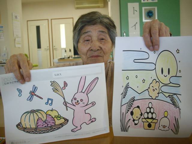 さて本日は、S様と十五夜も近いという事で一緒に十五夜の塗り絵を塗りました♪