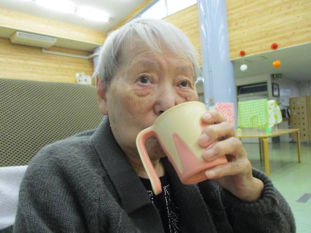 M様は、午後の受診から帰って来られた後、テレビを観ながらジュースを飲んで一息…☕