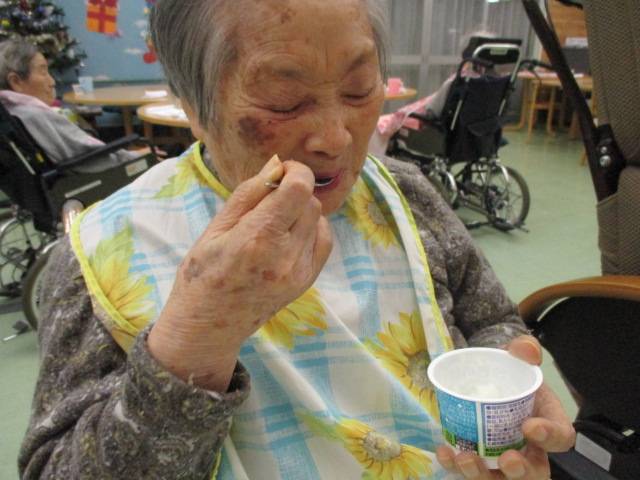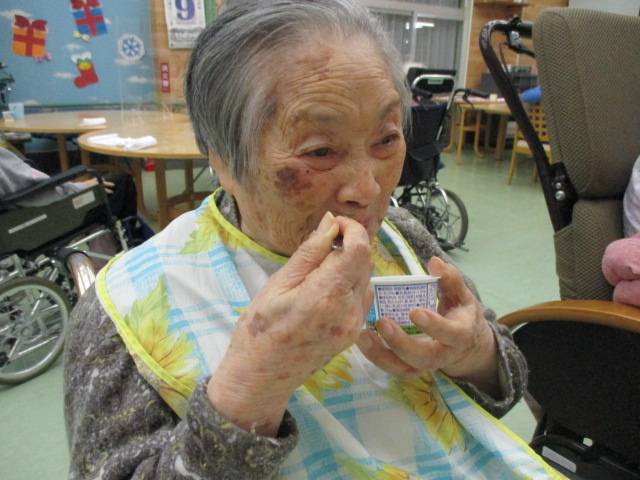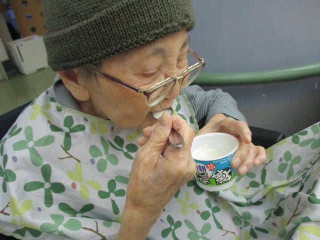 最後にこちらのY様、少々眠かったようでウトウトされていたのですが、ヨーグルトが出てくるとパッと起き、美味しいですか?と問うと、頷きながらパクパク食べておられました!