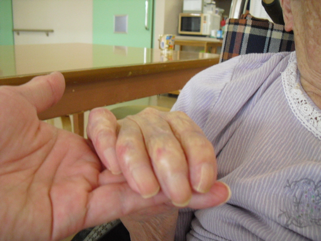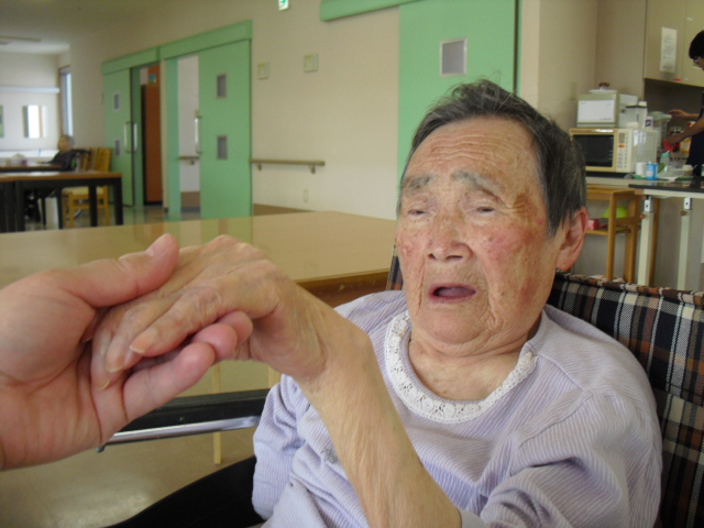 む難しい言葉でいうと上肢ROMというんですが、手をとりあうことでふれあい、お互いの信頼を高めるということに繋がります。ここの入居者様には、他にもたくさん素敵な方がいるので、後々載せていきたいと思います。 (看護 I.Y)
