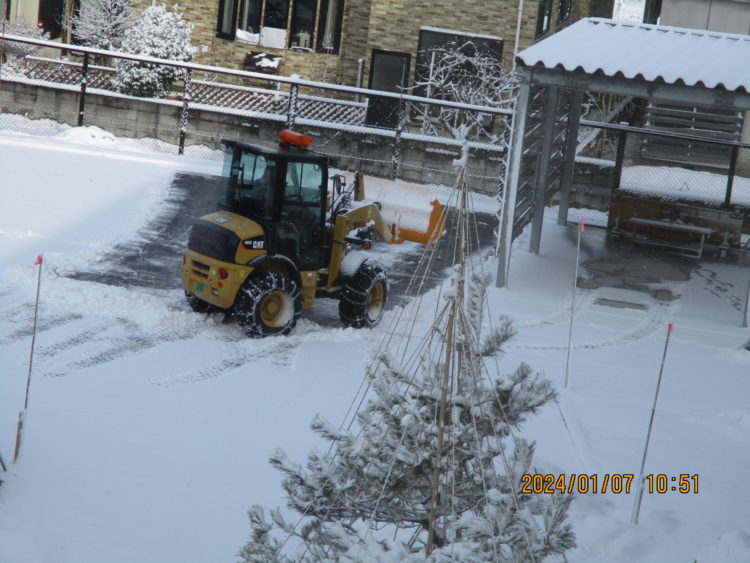 現在駐車場を除雪してくれています。本当にありがたいです。