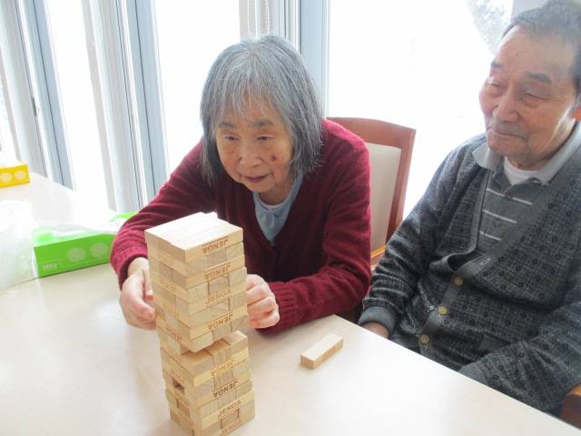 さてお茶の時間、お客様と一緒にジェンガを楽しみました。