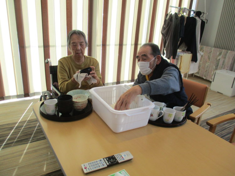 I様とK様に食器拭きをお願いしました。
