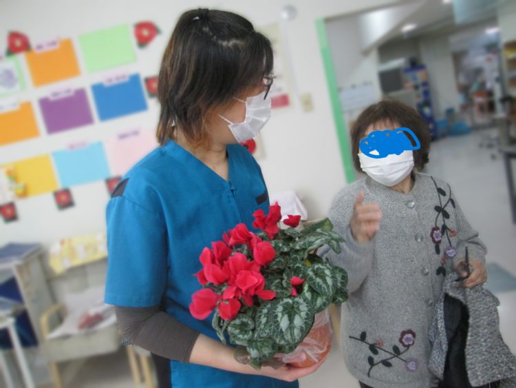職員へ綺麗な花を見せてくれました♪