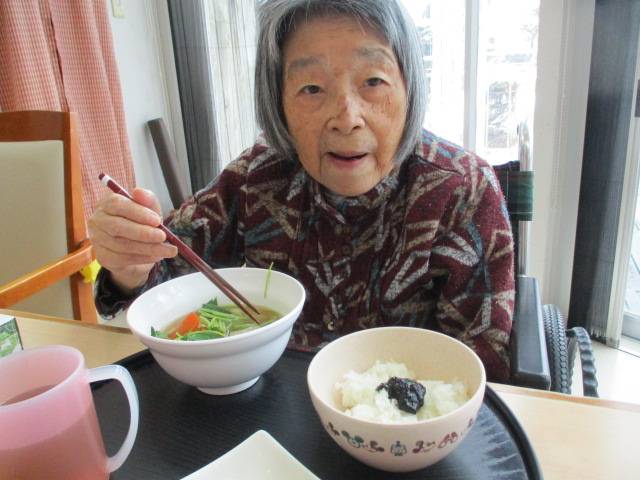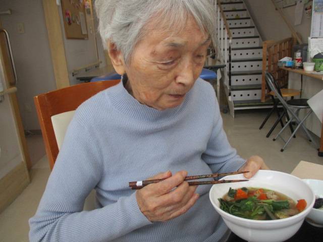 皆様、口々に「美味しいね~」と食され、J様曰く「すいとんは、す~い~っとんと食べられるからすいとんと言うのだよ」と大真面目なお顔で話されていました。周囲の皆様を笑いの渦に巻き込んでいたのは言うまでもありません。(笑)