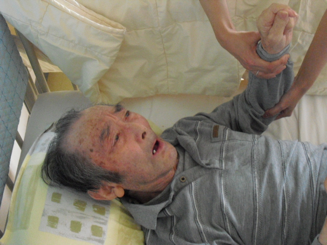 今回はN様と一緒にベッド上にて上下肢ROM訓練を行いました。