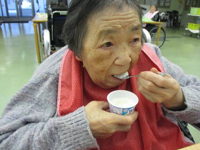 最後にS様、起きてきたら目の前にヨーグルトが…😋「わぁ~ありがとさん」とお礼を言って下さり、「美味しいな~」ときれいに食べてくれました☆