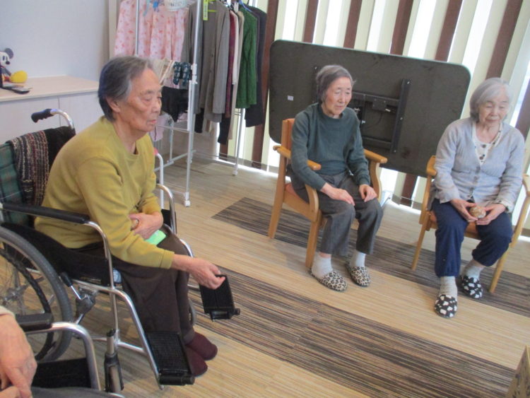 1階の様子です。午後にボールを使って手の運動を行いました。