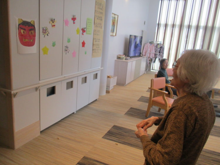 午後より1階と2階ホールにて豆まきを行いました。
