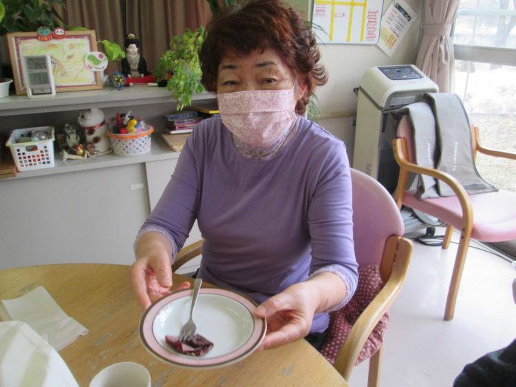 デイサービスでもささやかですが、チョコレートケーキをご用意してみなさんに召し上がっていただきました✨