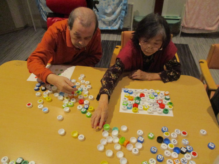 文字探し、色探しは皆様黙々と真剣に取り組んでくださいます。全部集められると達成感が得られて、良い表情をされていました。