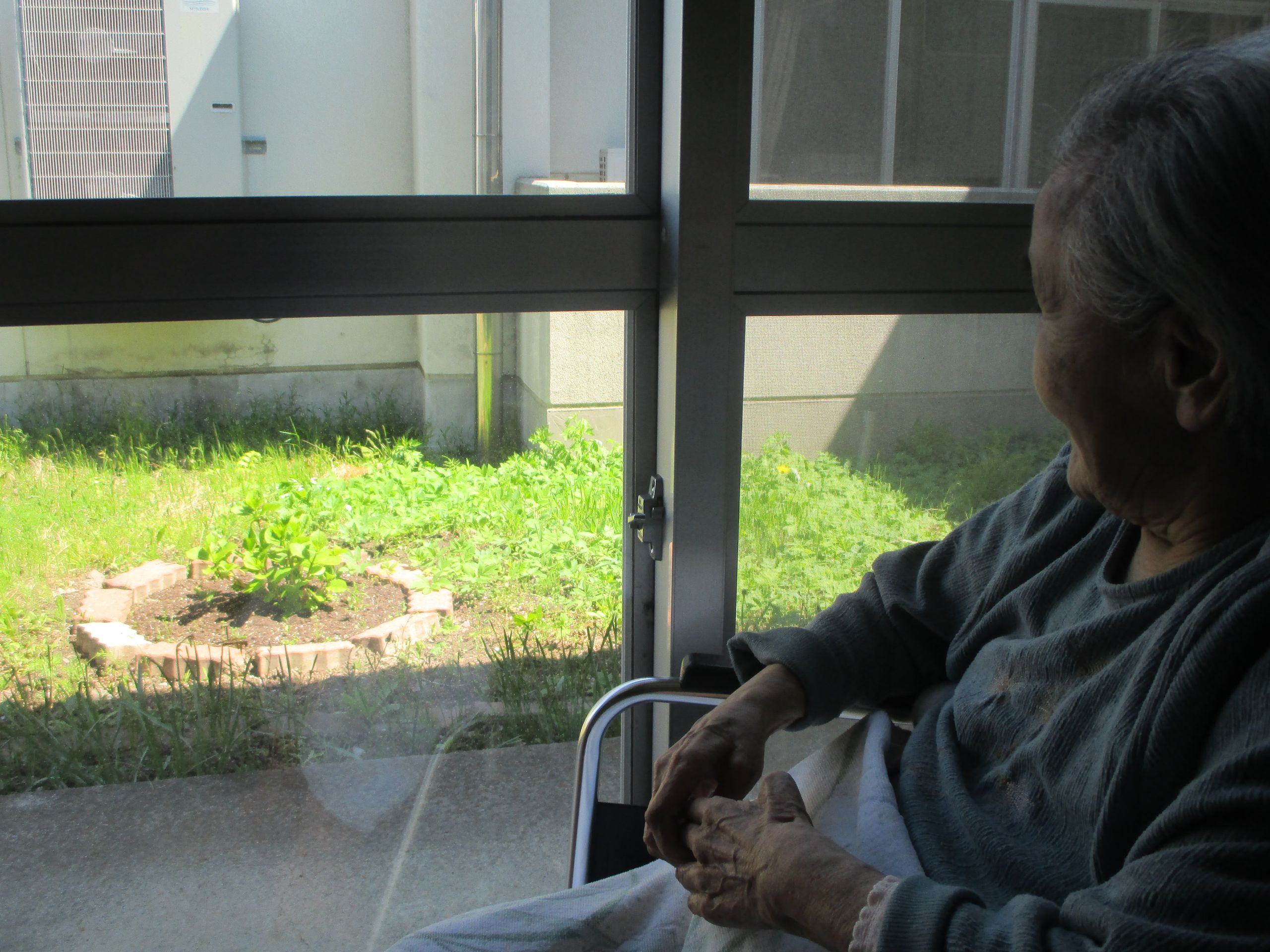 そんなI様。息子さんから紫陽花の鉢もプレゼントしてもらい、自室から見えるところに植え替えをしてもらったそうです。「早く咲かないかな。何色か楽しみ。」とも話されておりました。