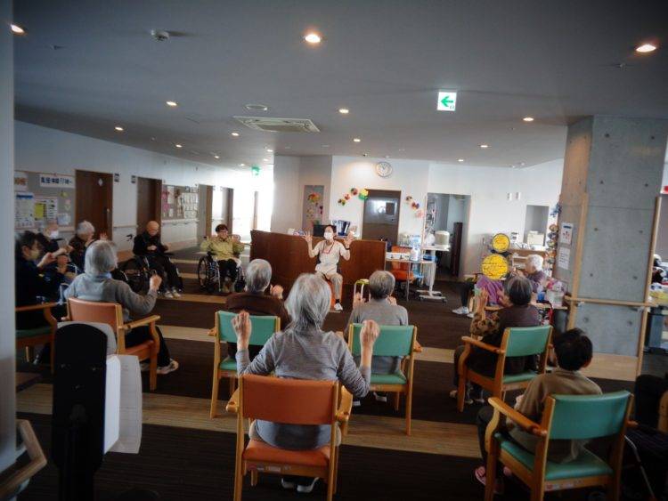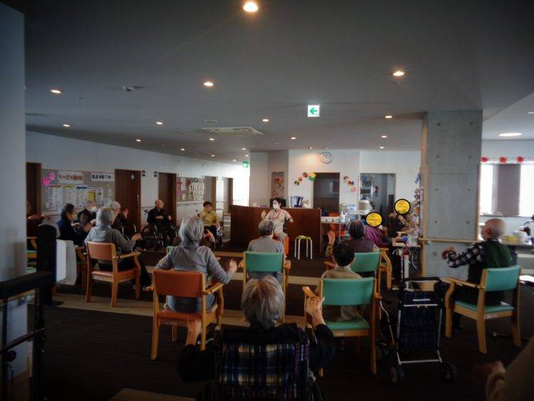 その他には集団で合唱したり、道具を使った遊び等でお客様同士で競い合ったりと集団体操にもたくさんの種類を行っております。その様子はまた、今度のブログでご紹介致します。