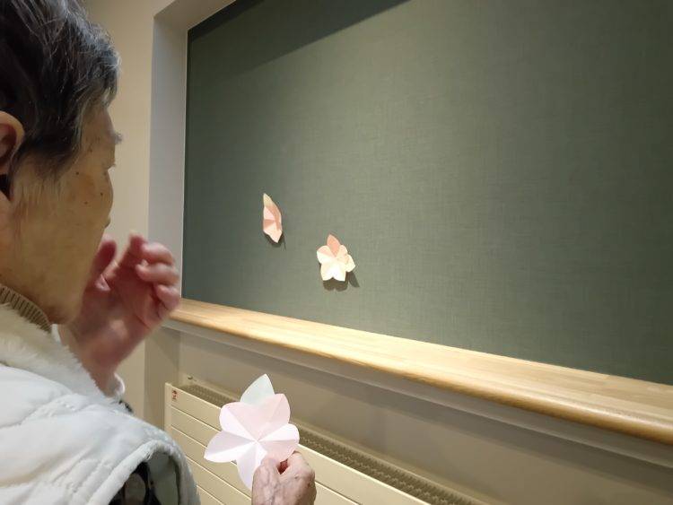 お客様も手伝ってもらい少し掲示板も春らしい感じにしました。