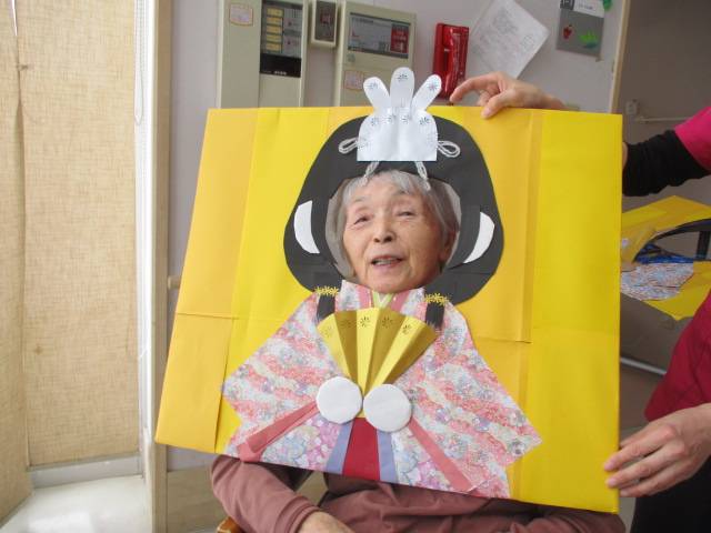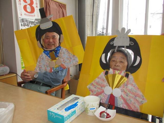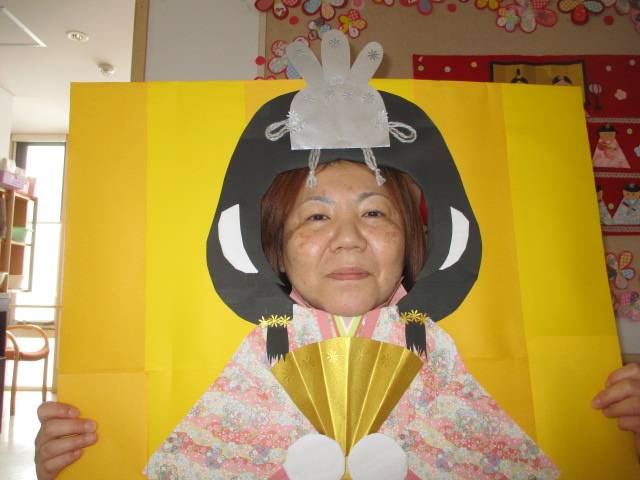 お雛様の歌を歌って、楽しく過ごされておりました。