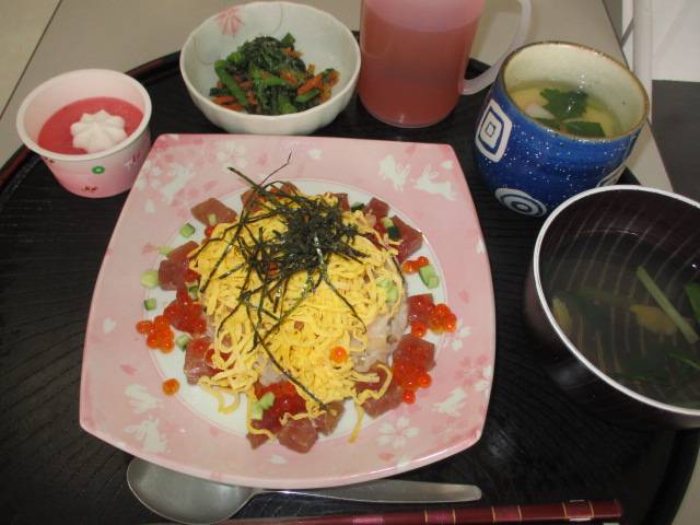 また、普段とは違う行事食を召し上がっておられ、「豪華だね。美味しいよ。」と、