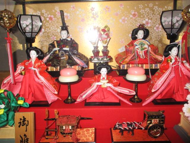 ひな人形を飾り、桃の花を添え、ひし餅やひなあられ等、ひな祭りならではの