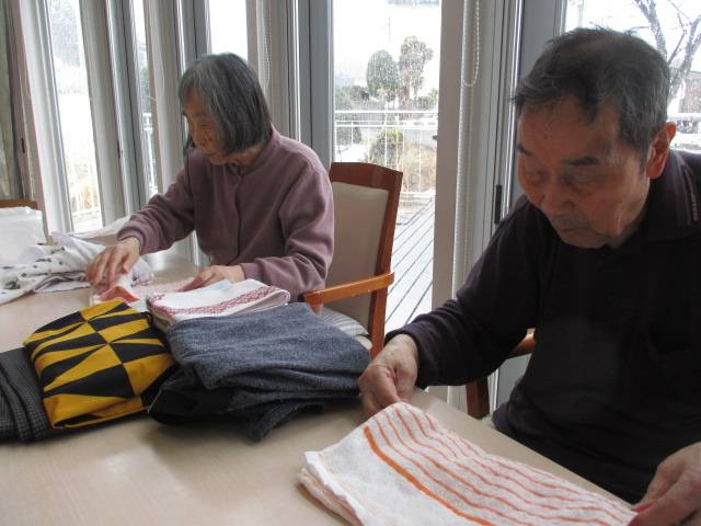 本日はホールで過ごされていたお客様に洗濯物たたみをお願いいたしました。