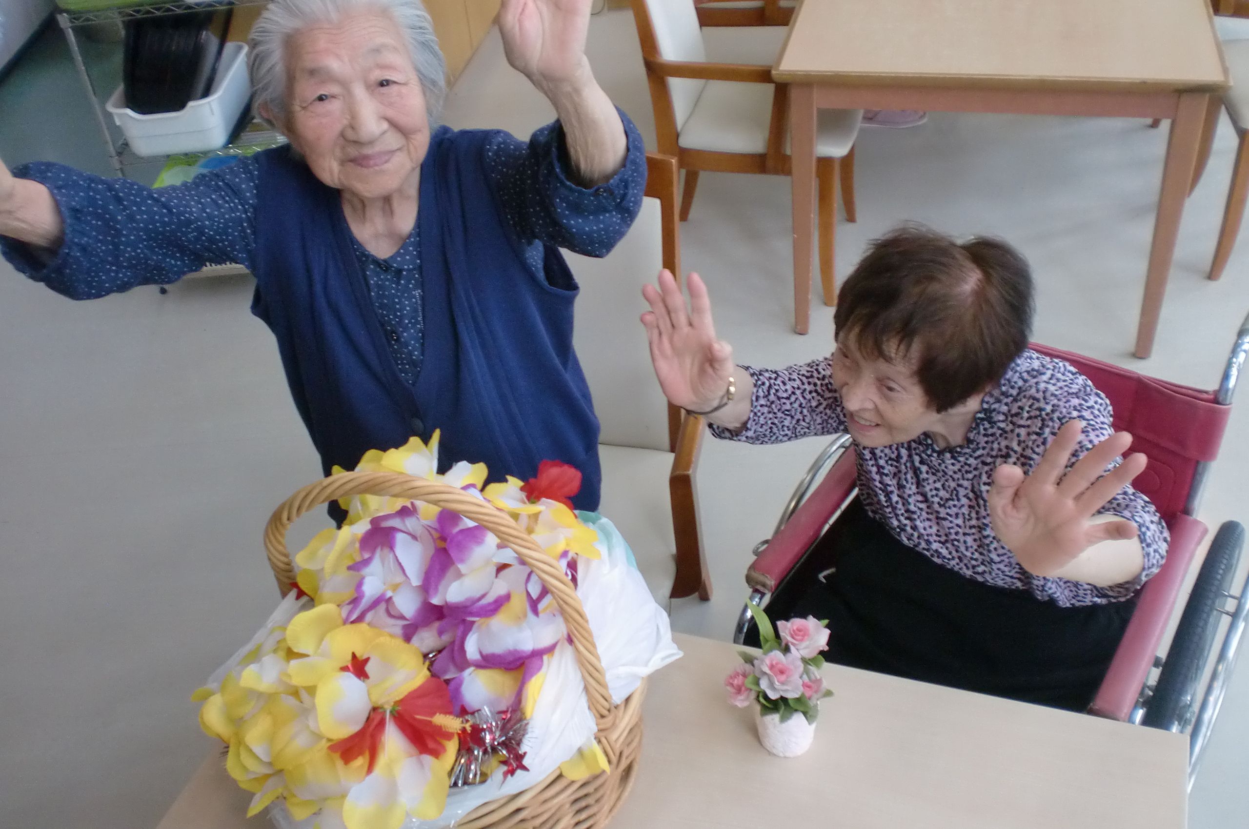 ベルフラワーのブログを楽しみにしている皆さんこんにちは!キレイな花が咲き始め、心も体も♪ウキウキ♪してくるこの季節。今日はみんなで、フラワーアレンジメントに挑戦してみました。