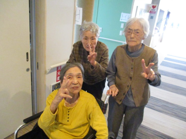 歩行体操中に、職員がカメラを向けると笑顔でピースをしてくださいましたよ。とても素敵です😊