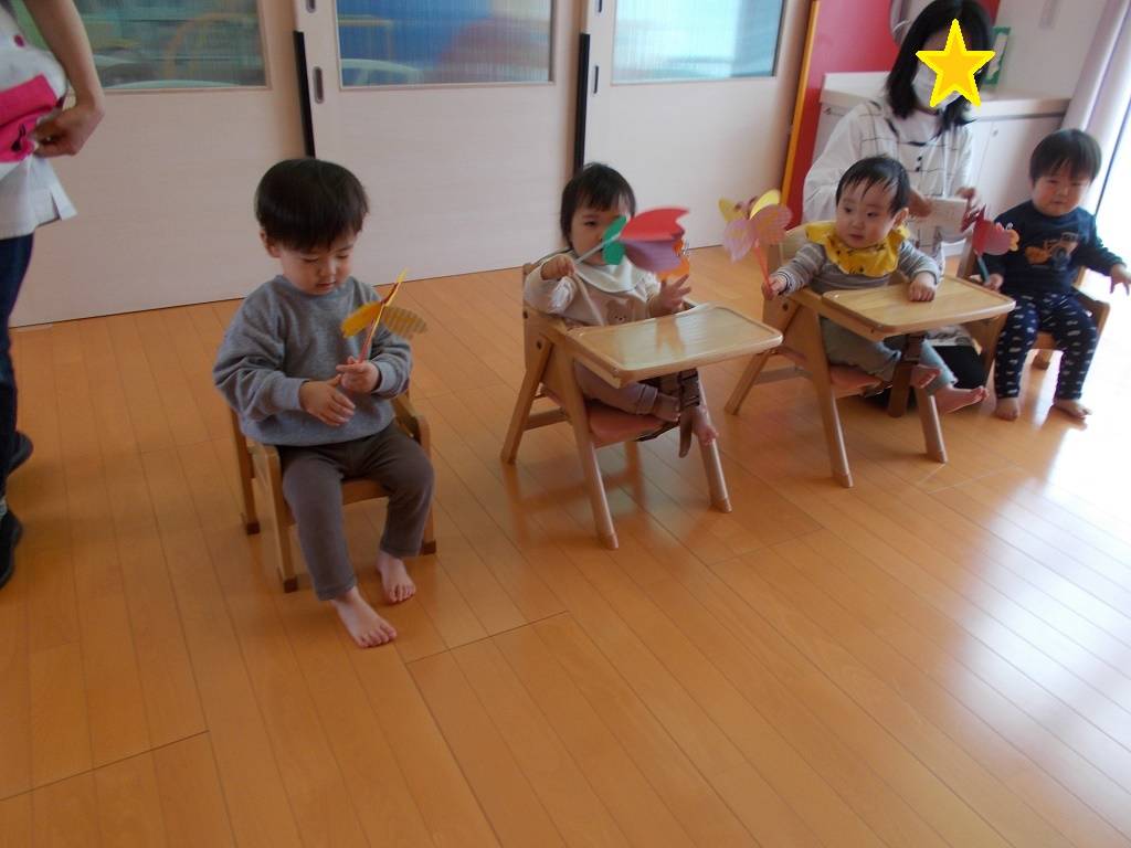 あくしゅでこんにちは♪などの歌を歌って、フリフリ。