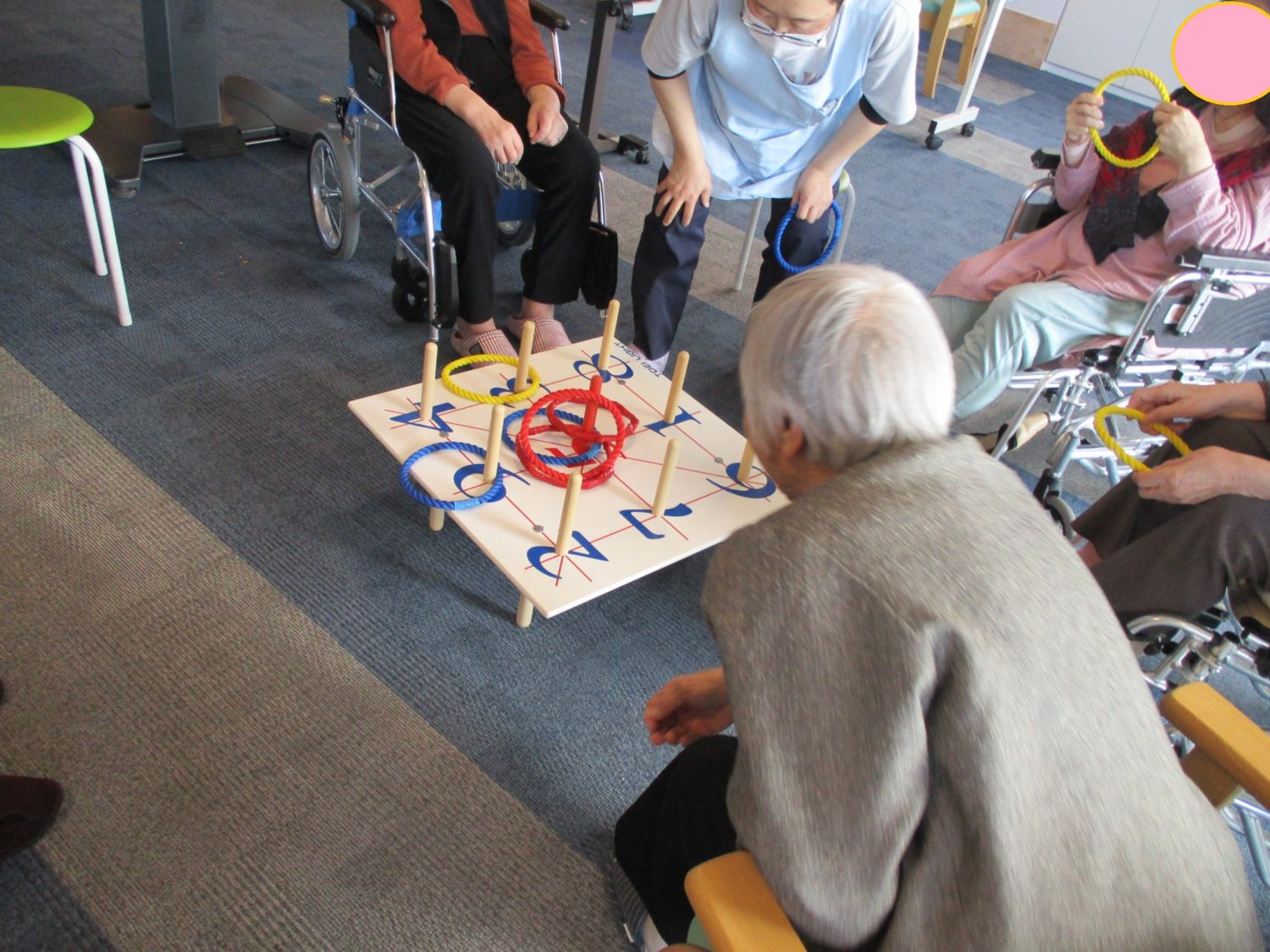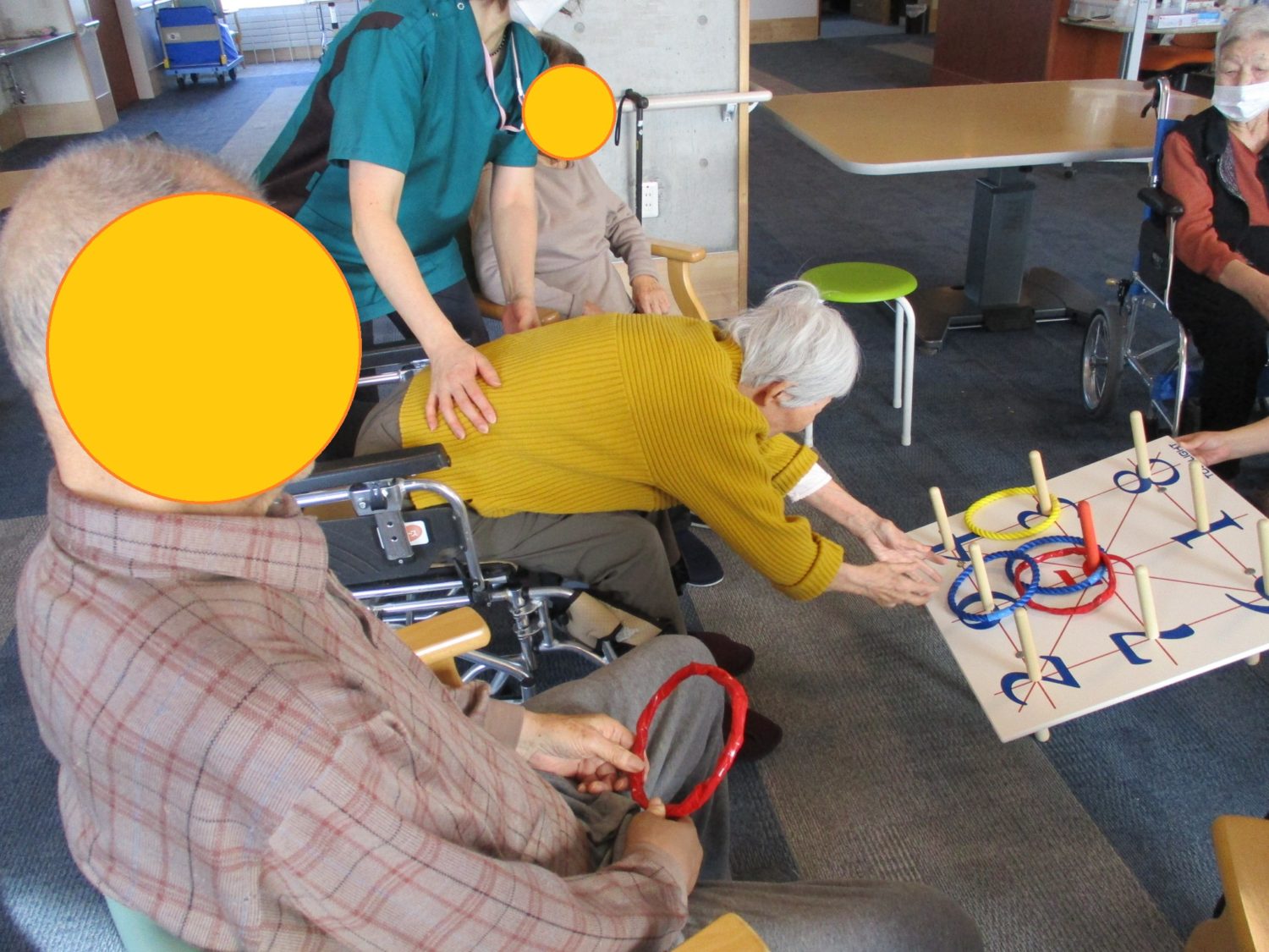 ブログをご覧の皆様、こんにちは。今日の体操はリハビリを兼ねて輪投げを行いま
