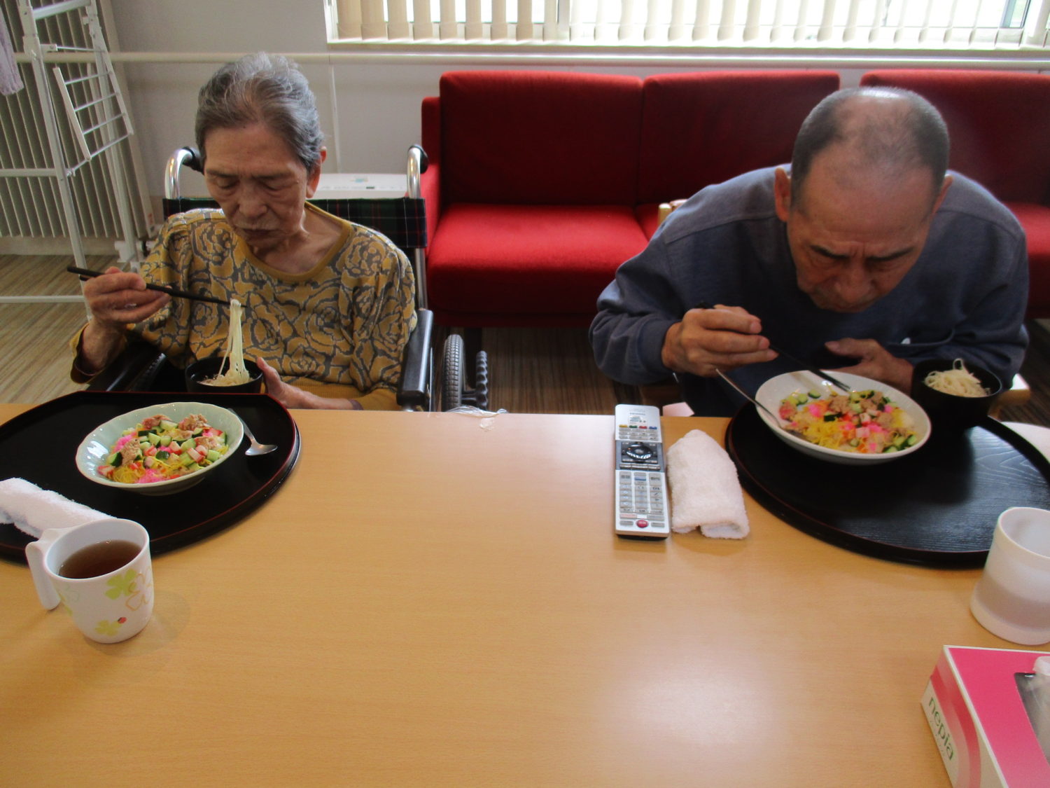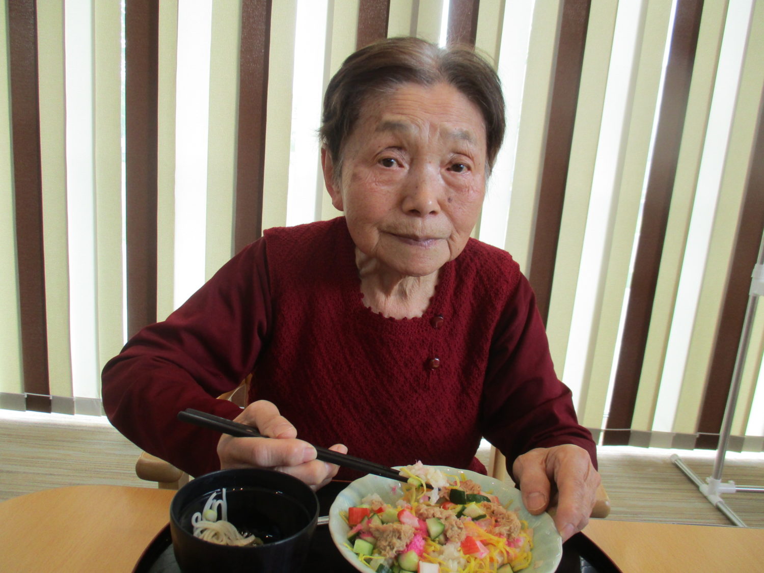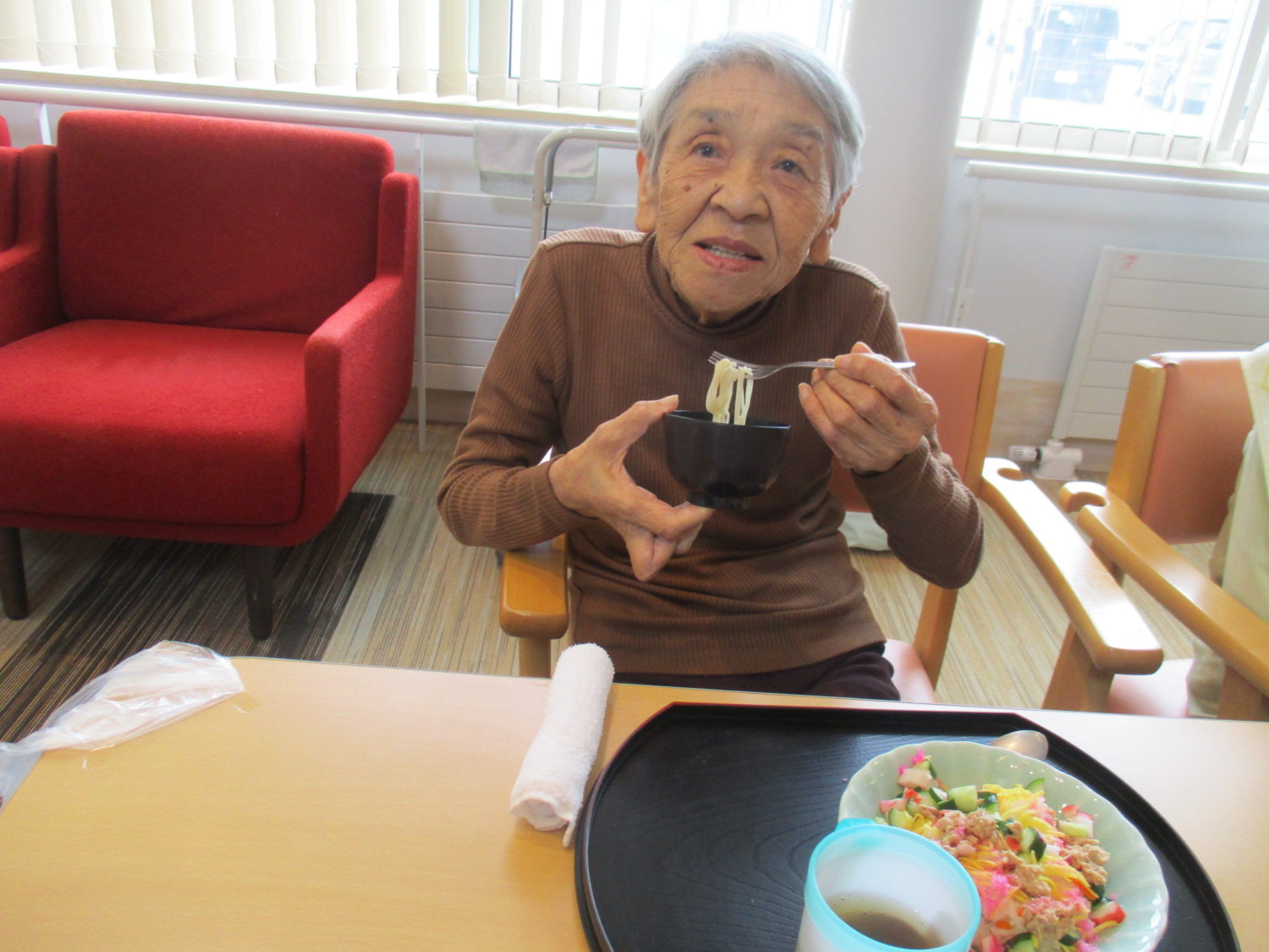 皆様、久しぶりのちらし寿司で「うん、美味しいよ~」と黙々と食べておられました。そうめんもつるつるとあっという間に完食でした。
