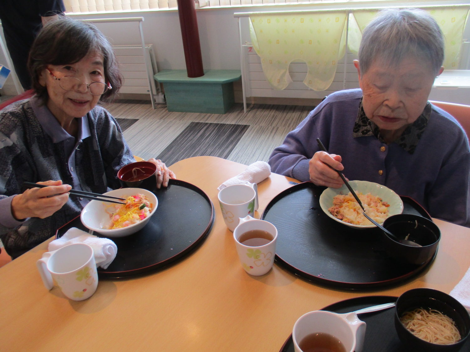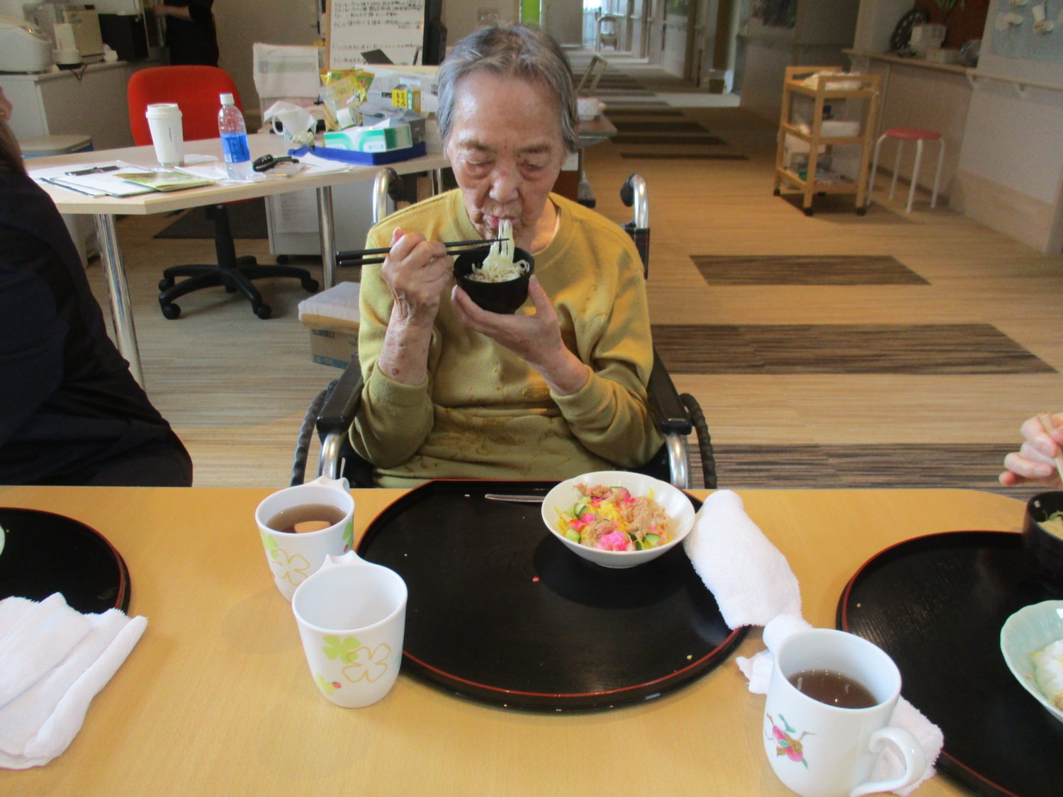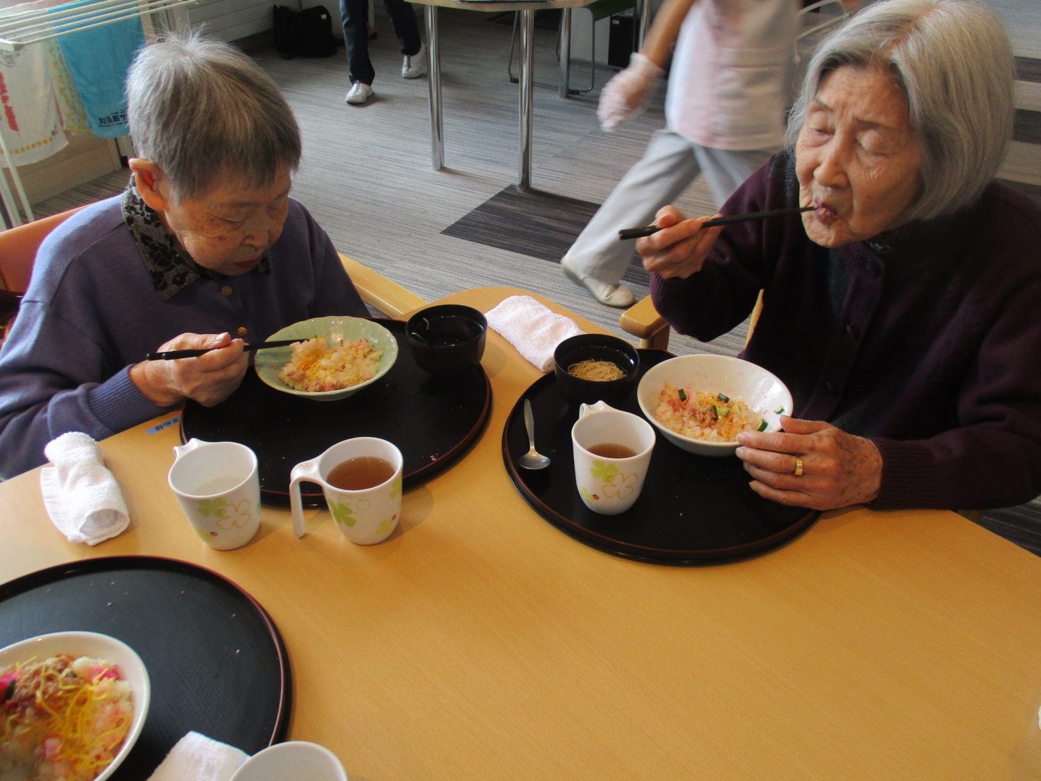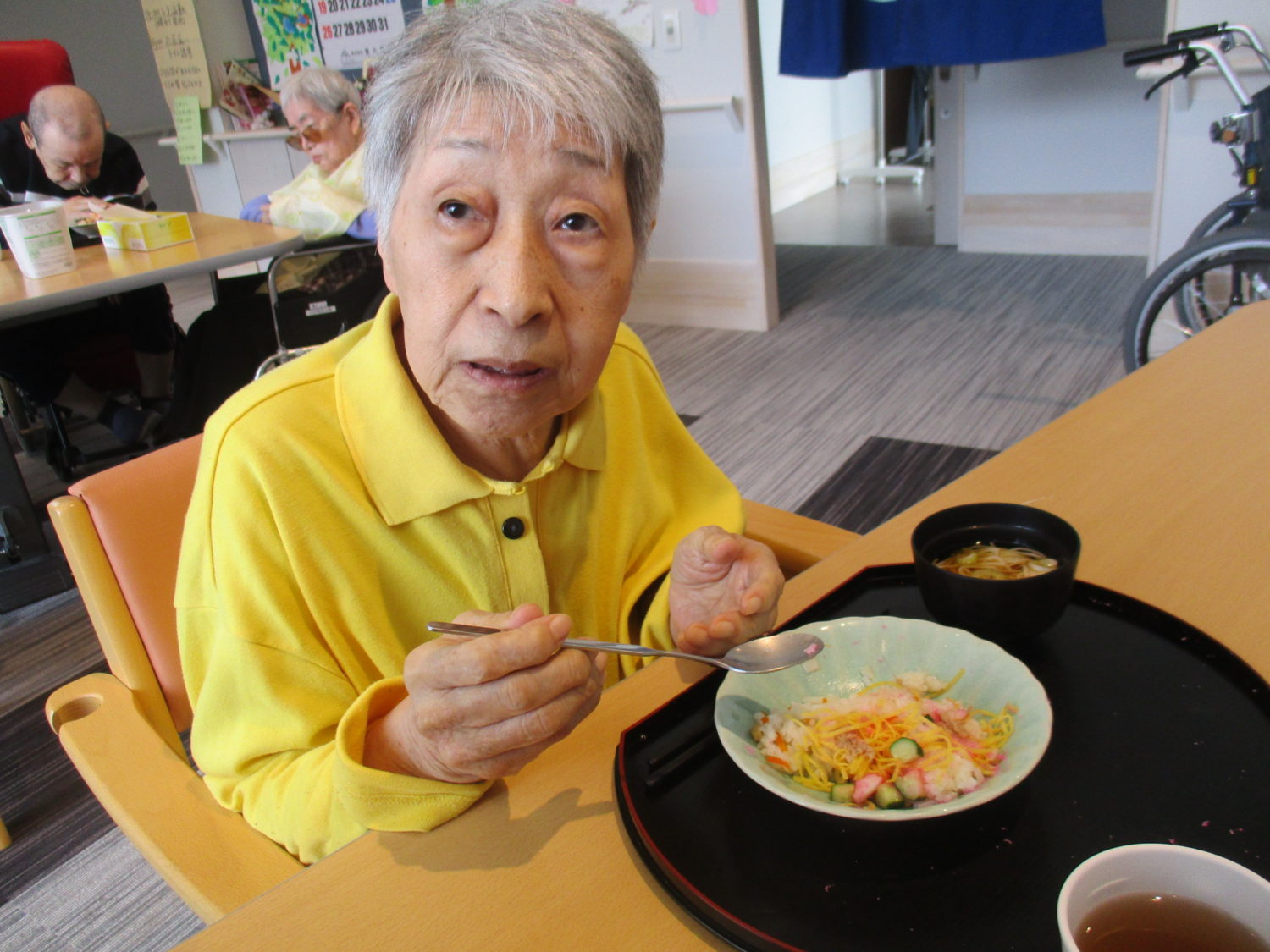 皆様、久しぶりのちらし寿司で「うん、美味しいよ~」と黙々と食べておられました。そうめんもつるつるとあっという間に完食でした。