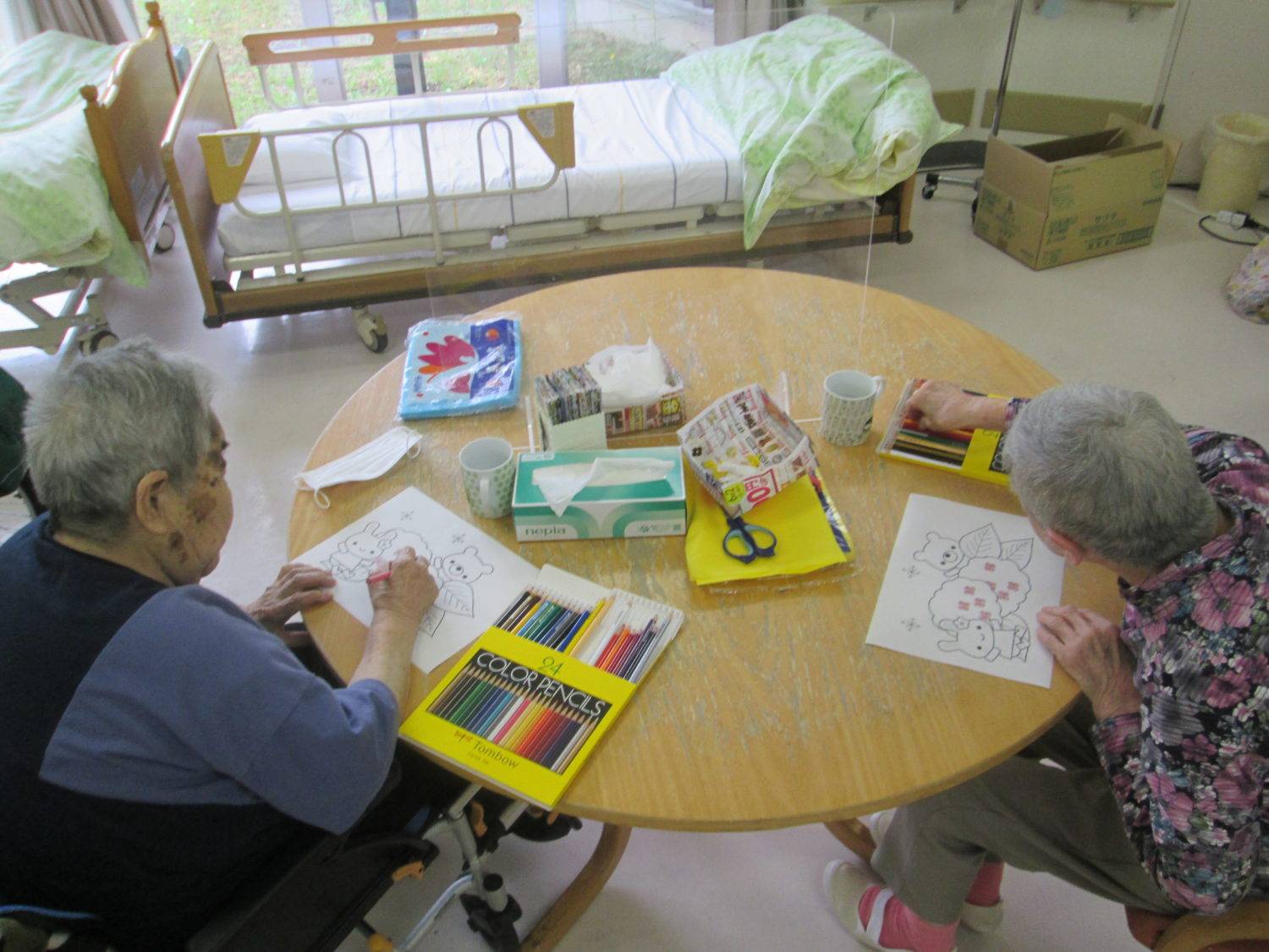 プリント問題と塗り絵に分かれてそれぞれ頑張って頂きました。午後はお腹いっぱいで眠くなる時間帯ではありますが、皆様とても一生懸命・・頭を抱えながら真剣に取り組んでおりました。