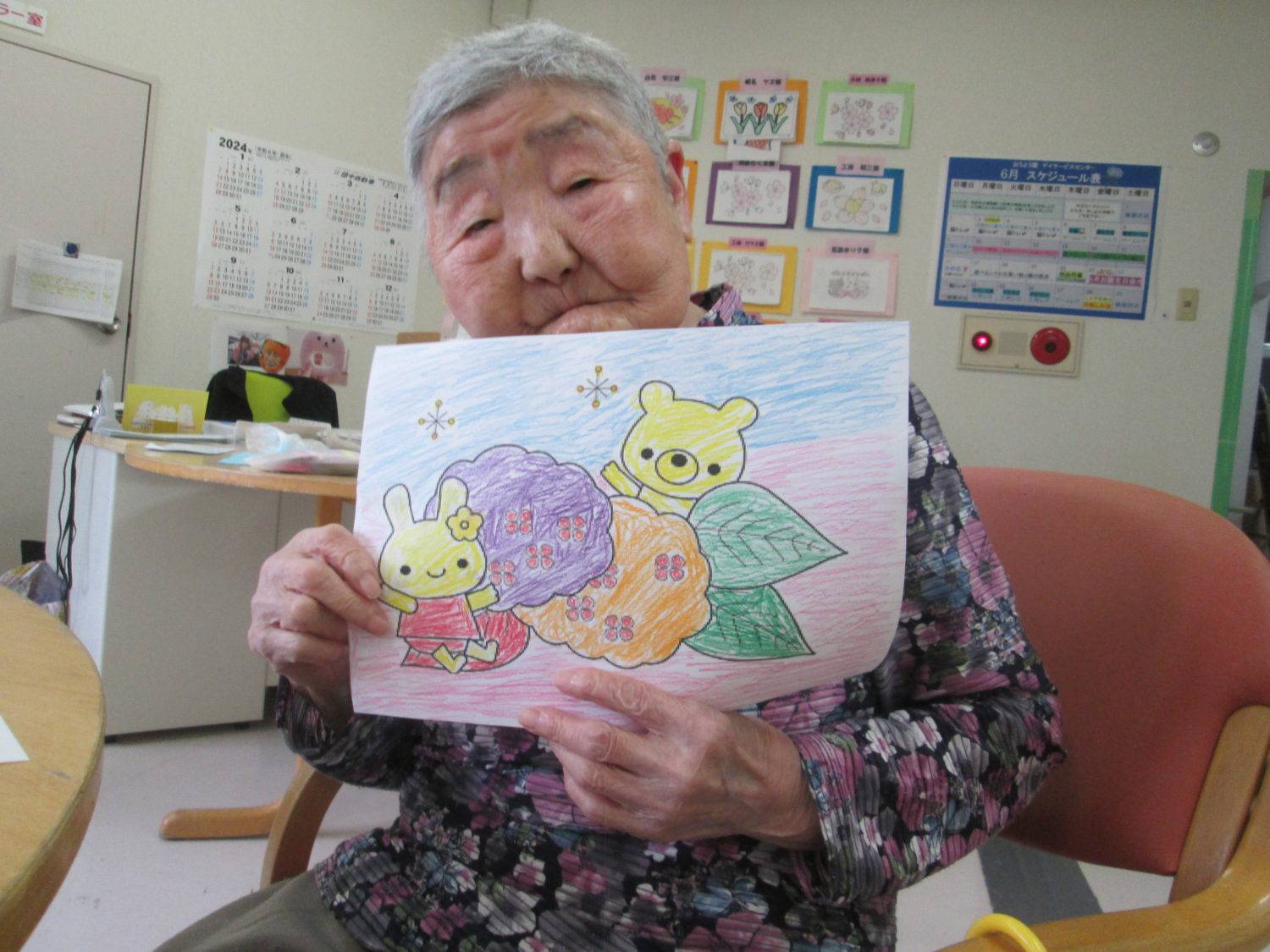 塗り絵をされていたS様は・・・・・とても色使いが良く上手に仕上げておりました。