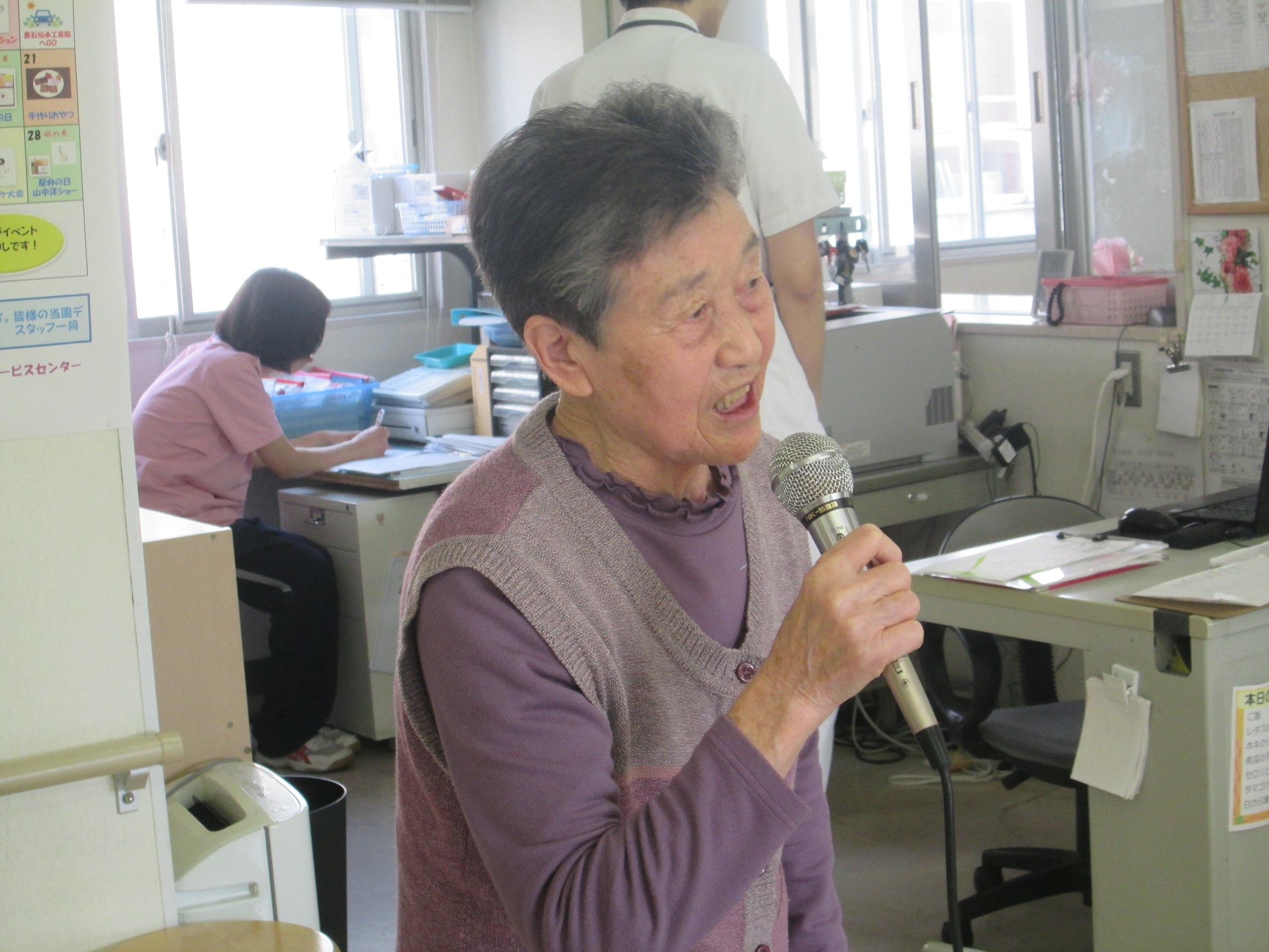それから皆さん、思い思いの歌を披露して下さいました。本日は、スタッフも一緒に歌いお客様より温かい拍手を頂き自信がついたことと思います。
