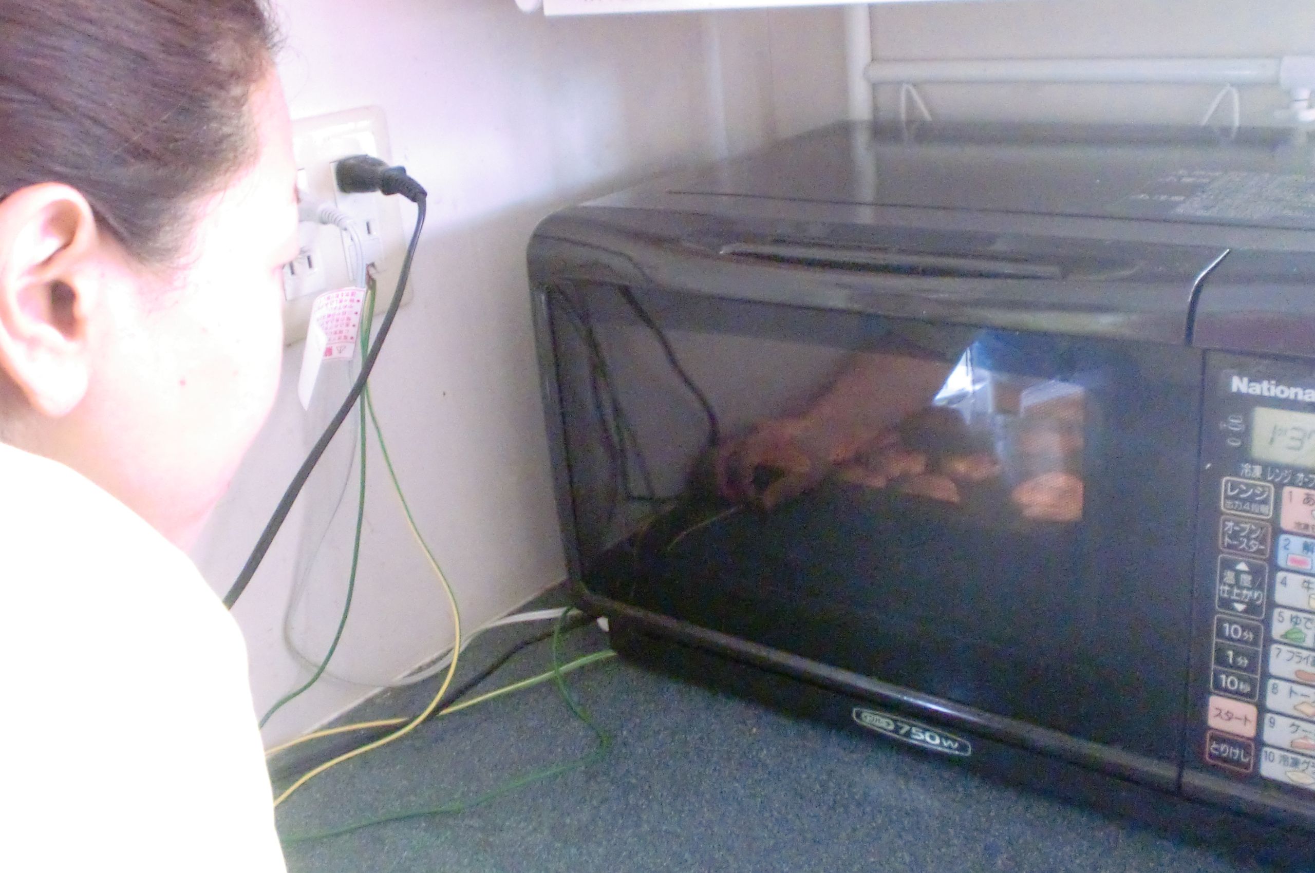 心配そうにレンジを見守る職員ですがはたしてうまく焼きあがるでしょうか?