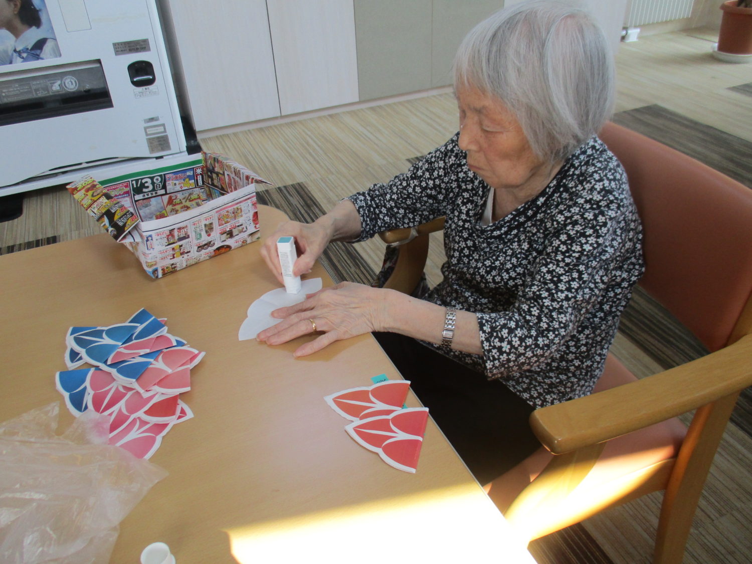 今日は、レクの活動の時間にお客様と一緒に金魚ねぷた作りの様子をご紹介します。