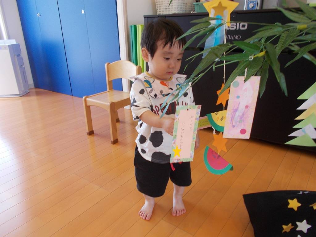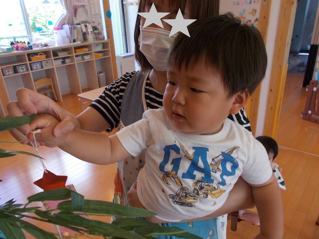 7月7日は七夕です。園内の笹の葉には、様々な願いごとや笹飾りが揺れています。
