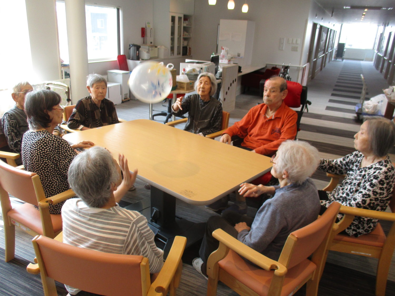 本日は、風船バレー、懐かしの名曲鑑賞、金魚ねぷた作りなどいろいろ行いました。