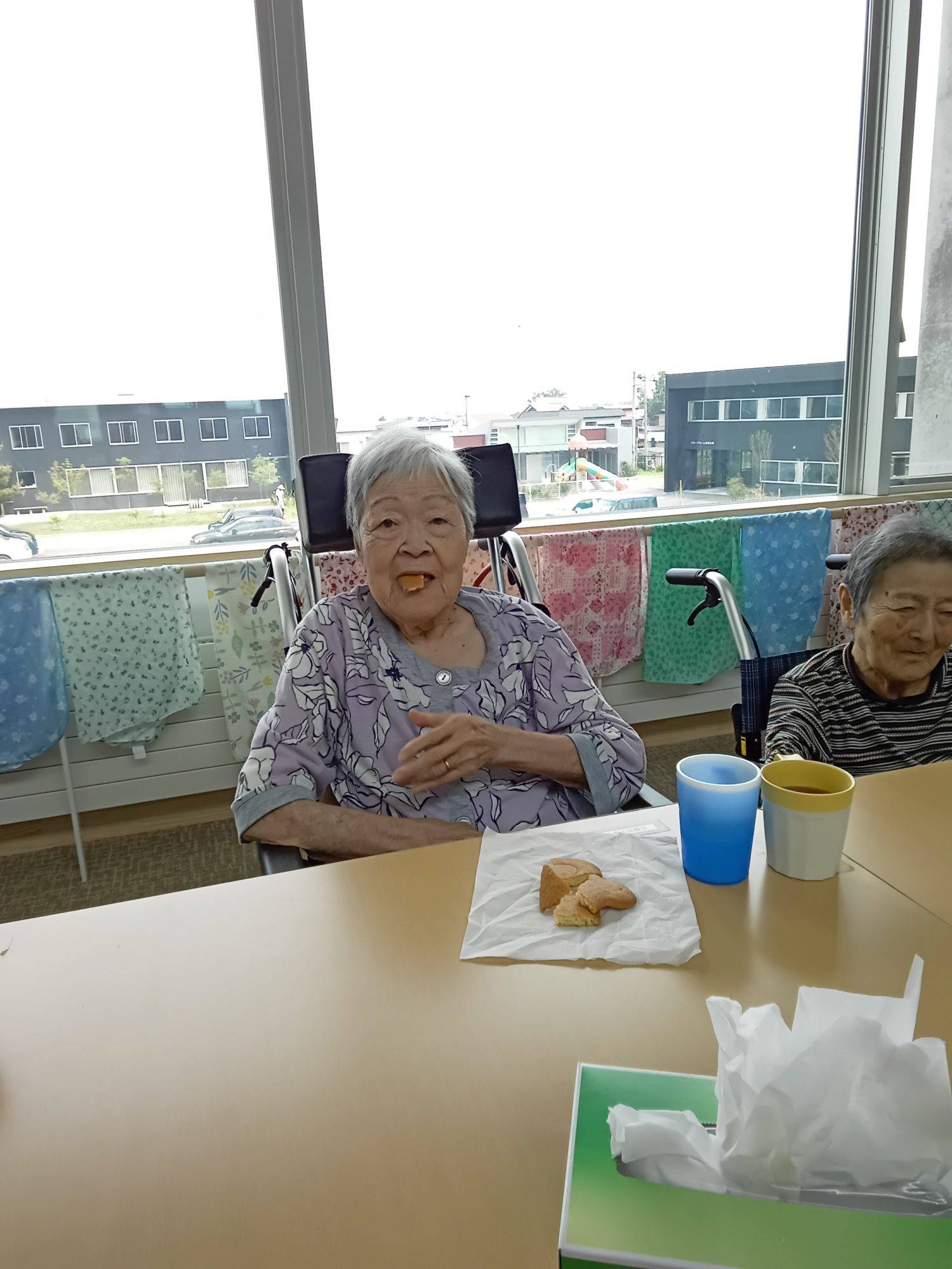 こちらのお客様も、御家族様から届いた果物やお菓子でリフレッシュされてます✨