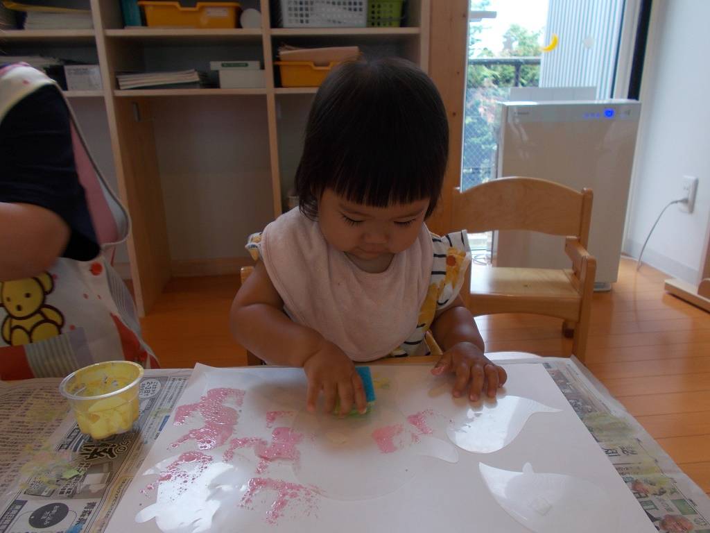 4色の色の交わりやスタンプの力の違いで、子ども達それぞれに違った味わいとなりました(*‘ω‘ *)