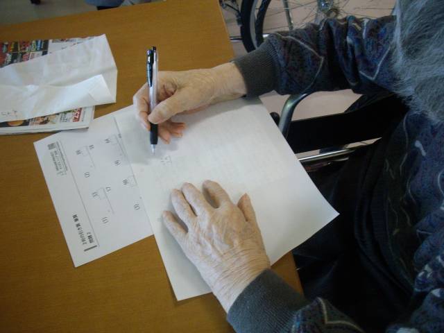 M様に算数をやっていただきました。M様は「わあさ出来るべが」と不安そうにしておりましたが、わからない所があれば、周りの職員や利用者様に聞き、諦めずに最後まで問題を解こうとしておりました。時間をかけて最後まで解くことができました。「何十年もやってないはんで、できねがったじゃ」と笑いながら話されておりましたが、最後までやろうとする精神、とても素敵です。