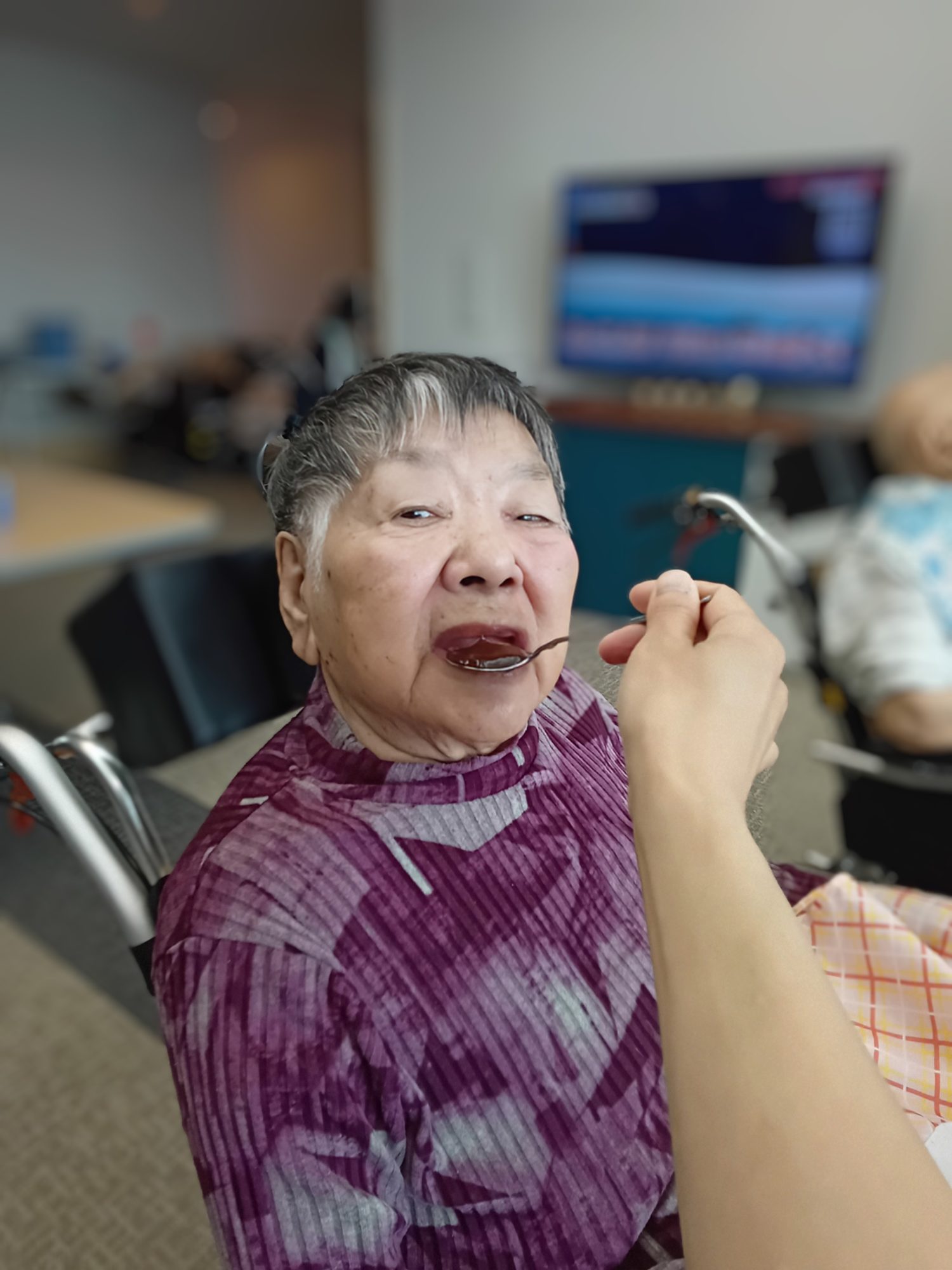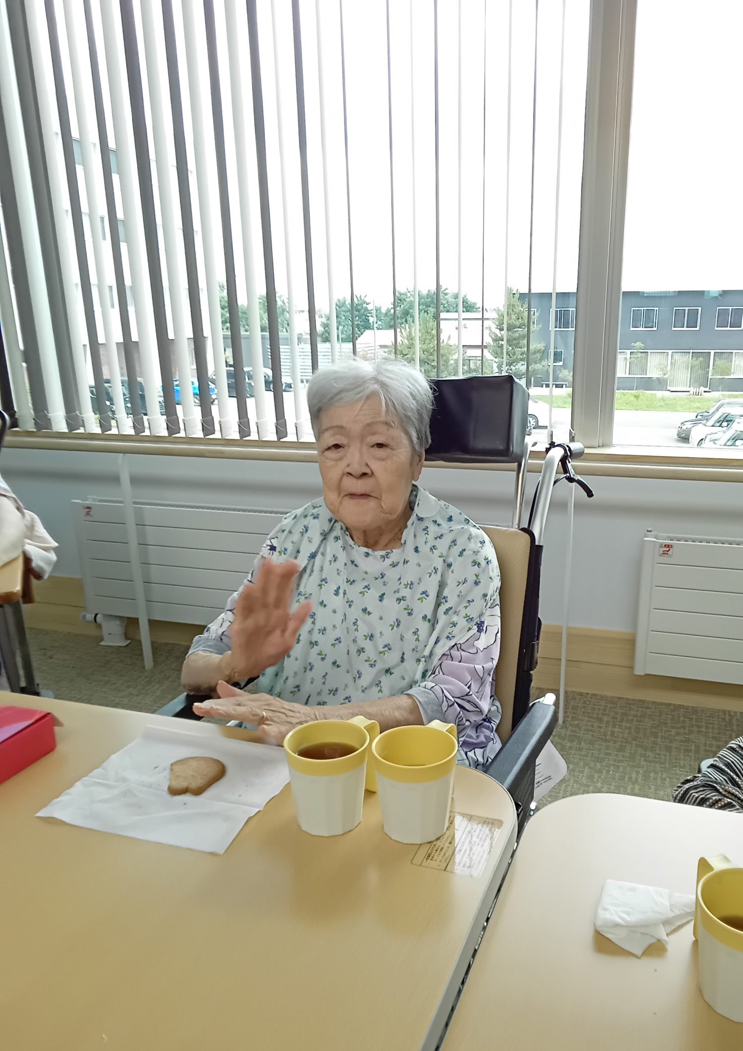 水分補給をされつつ、ご家族様から届いたお菓子やゼリーを、皆様美味しそうに召し上がってました。