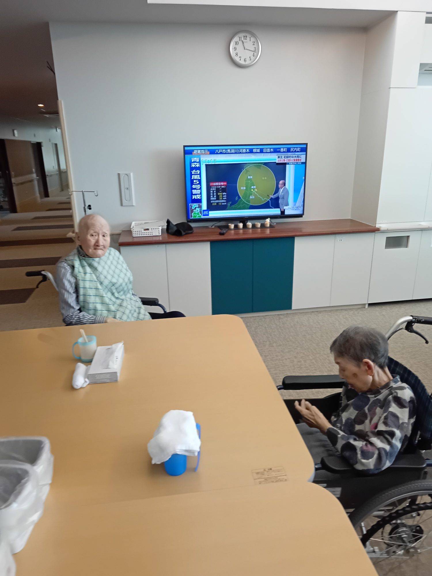 入居者の中にも台風を気にされている方も居ます。台風の動向をテレビで確認されている方も居れば、気にせず穏やかに休まれている方も居ます。