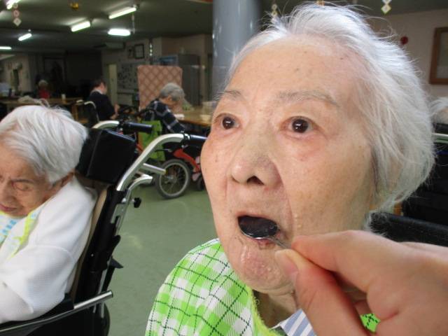 お次は自力で水分を飲めないお客様へ介助している様子です。誤嚥に注意し飲ませていきます。水分を摂り、お客様の目もぱっちり開いてすっきりお目覚めになっておりました。本日もお客様が元気に過ごしていけるように我々職員一同尽力していきます。