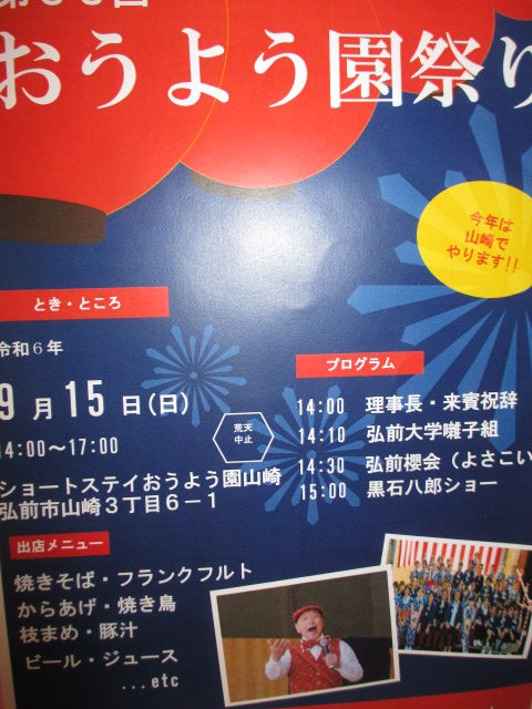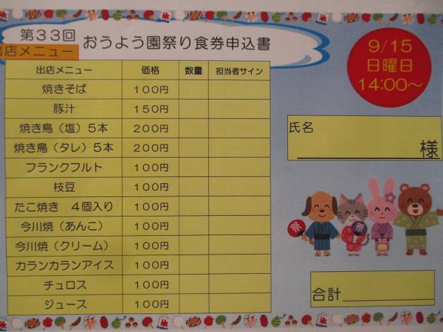 さて、いよいよ明日に迫ったおうよう園祭り。お客様も大変楽しみしている様子です。出店メニューを確認しながら「わたしは焼きそばと枝豆」「全部食べたい」など嬉しそうに食券を選んでおられました。黒石八郎ショーを楽しみにしているお客様も多数いらっしゃいましたよ。