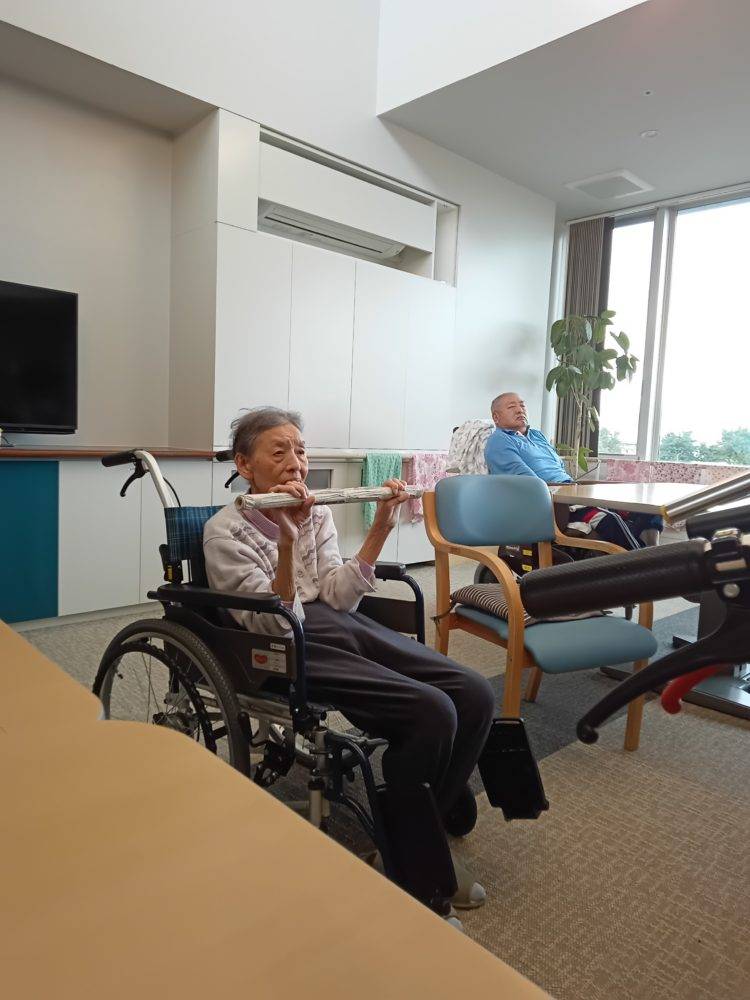 体操が終わった後はお昼ご飯まで、食卓でゆっくり過ごされていました。