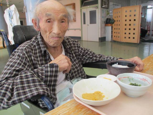 次にN様を紹介したいと思います。N様にどの料理が好きか聞いたらロールキャベツとオクラとおかかの和え物が好きだと話しておりました。N様も朝食を残さずに全部綺麗に食べておりました。