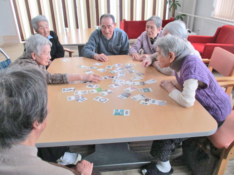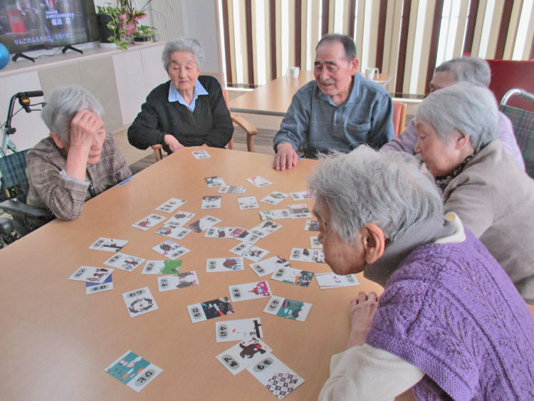 本日はレクの時間に正月遊び(カルタ)を行いました。その様子をご覧ください。