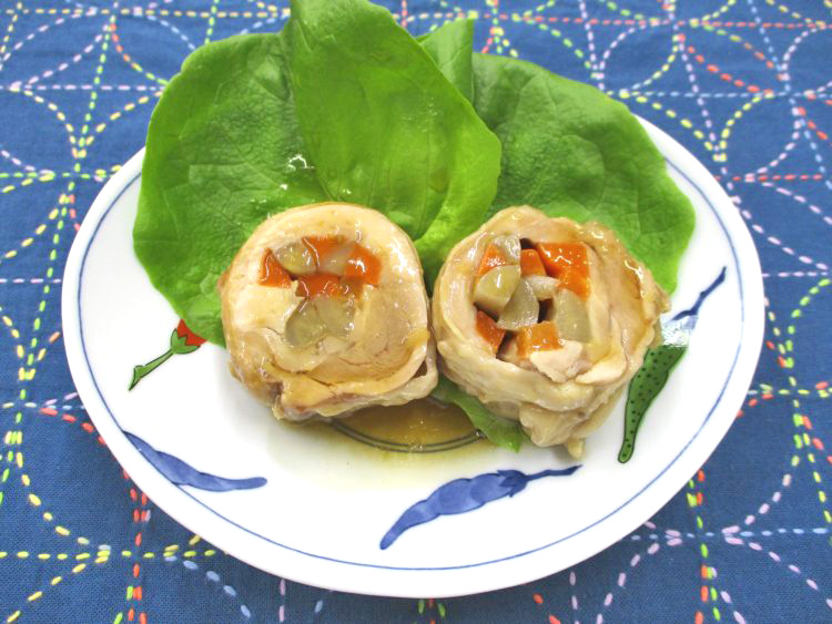 ご飯、あさりとねぎのみそ汁、鶏肉の八幡巻き、キャベツとなるとのソテー、帆立風味フライ、