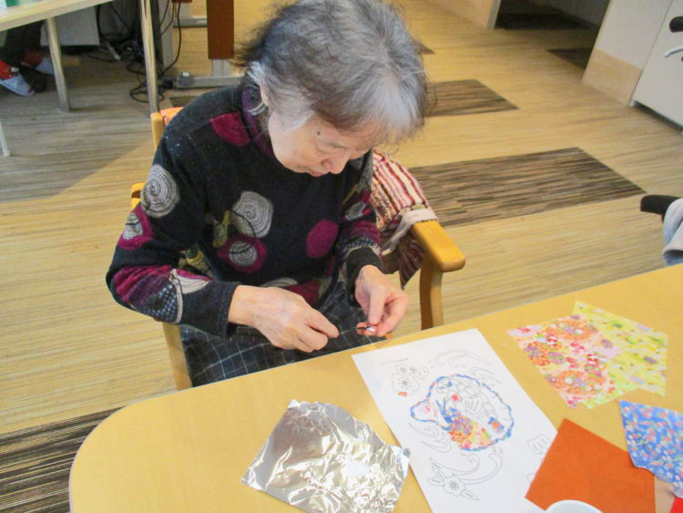 2月も近いので節分の塗り絵や切り絵を行っていました。