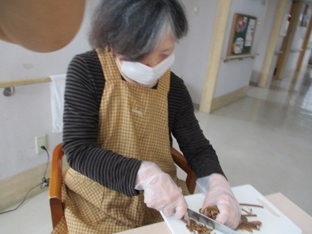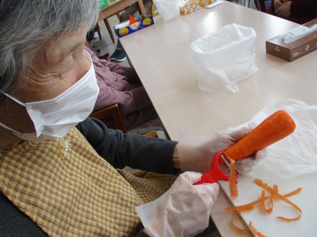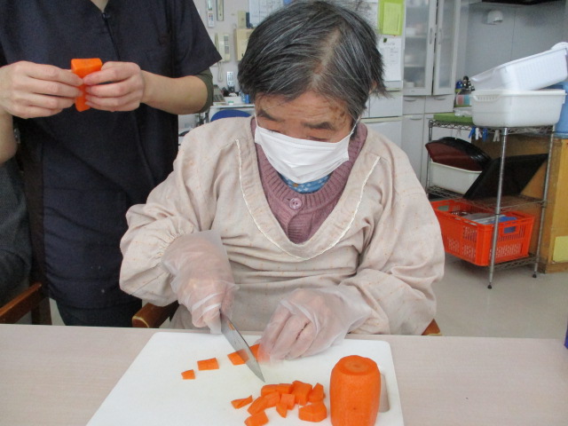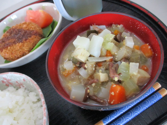 今日は調理活動の様子をお伝えします。この日のメニューはけの汁。毎年リクエストが多く、大好評のメニューです。