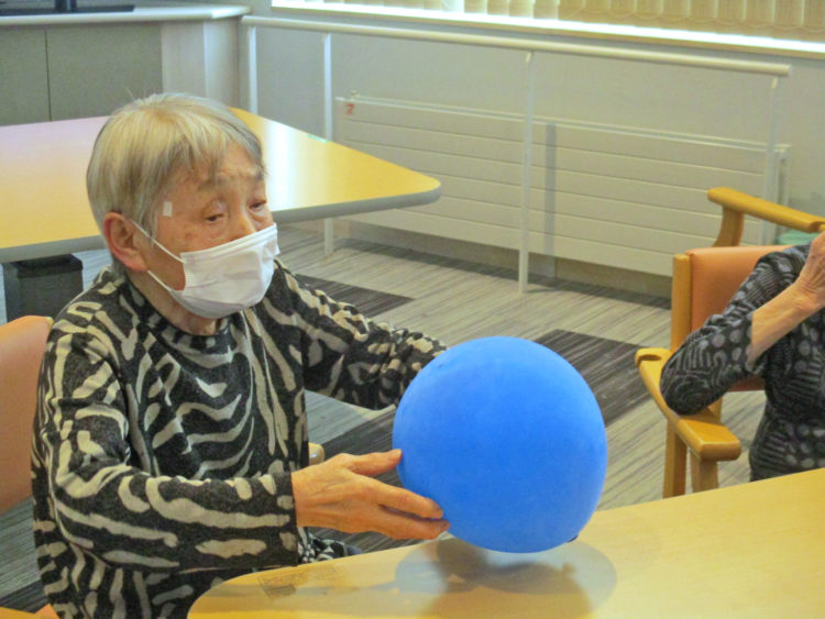 皆様とても上手に風船を触って床に落とさないよう、頑張っておりました。風船バレーを終えると沢山の方から「楽しかった」と笑顔で話されておりました。