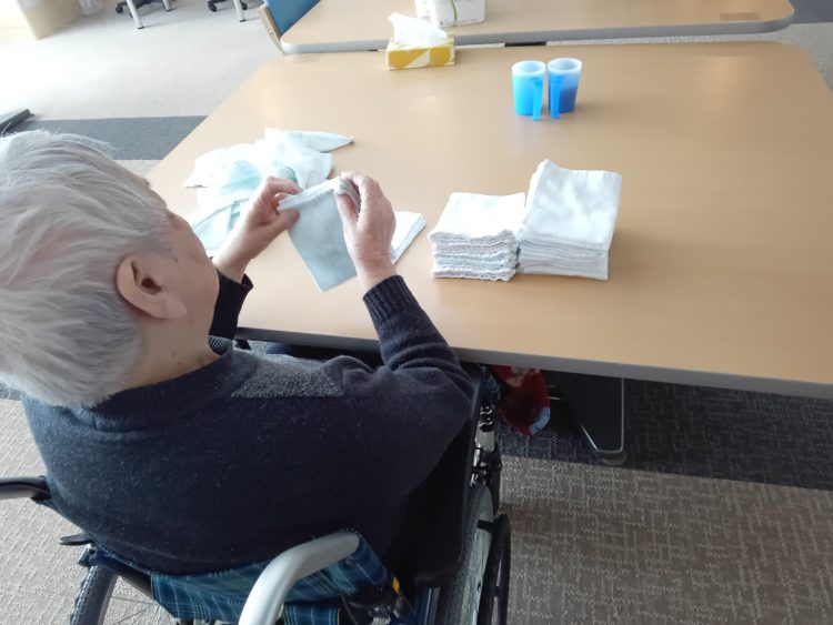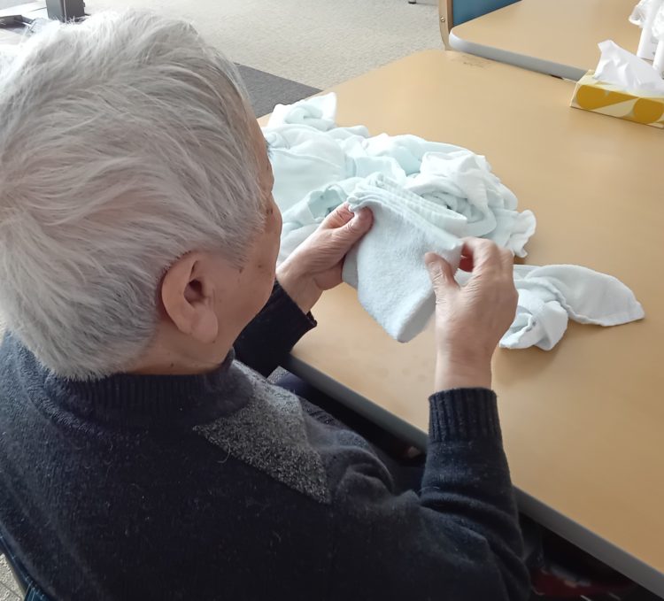 角と角をきっちり揃えてたたまれ、「丁寧ですね~」との声掛けに、嬉しそうにほほ笑んでいらっしゃいました(≧▽≦)